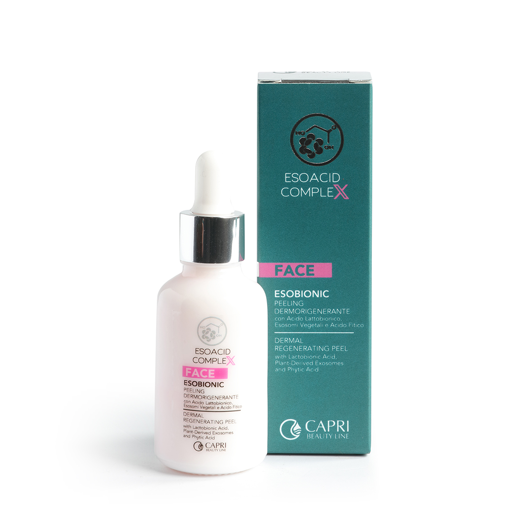 Il Peeling Esobionic rinnova la pelle in modo controllato e ultra-delicato, ideale per pelli sensibili, reattive o facilmente arrossabili. L’Acido Lattobionico, PHA altamente tollerabile, esfolia gradualmente, trattiene idratazione e dona una luminosità uniforme senza irritare. Gli Esosomi Vegetali sostengono i processi riparativi e riducono le micro-infiammazioni, mentre l’Acido Fitico agisce come antiossidante leggero per attenuare rossori e opacità. La pelle ritrova comfort, regolarità e una luminosità morbida, perfetta nei protocolli di reset barriera o quando altri acidi risultano troppo aggressivi.